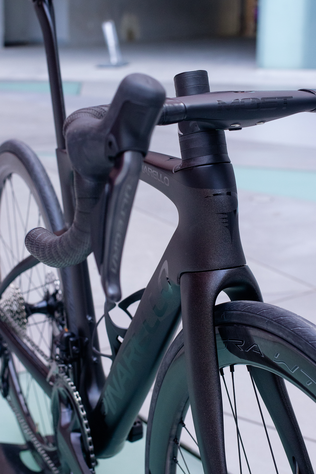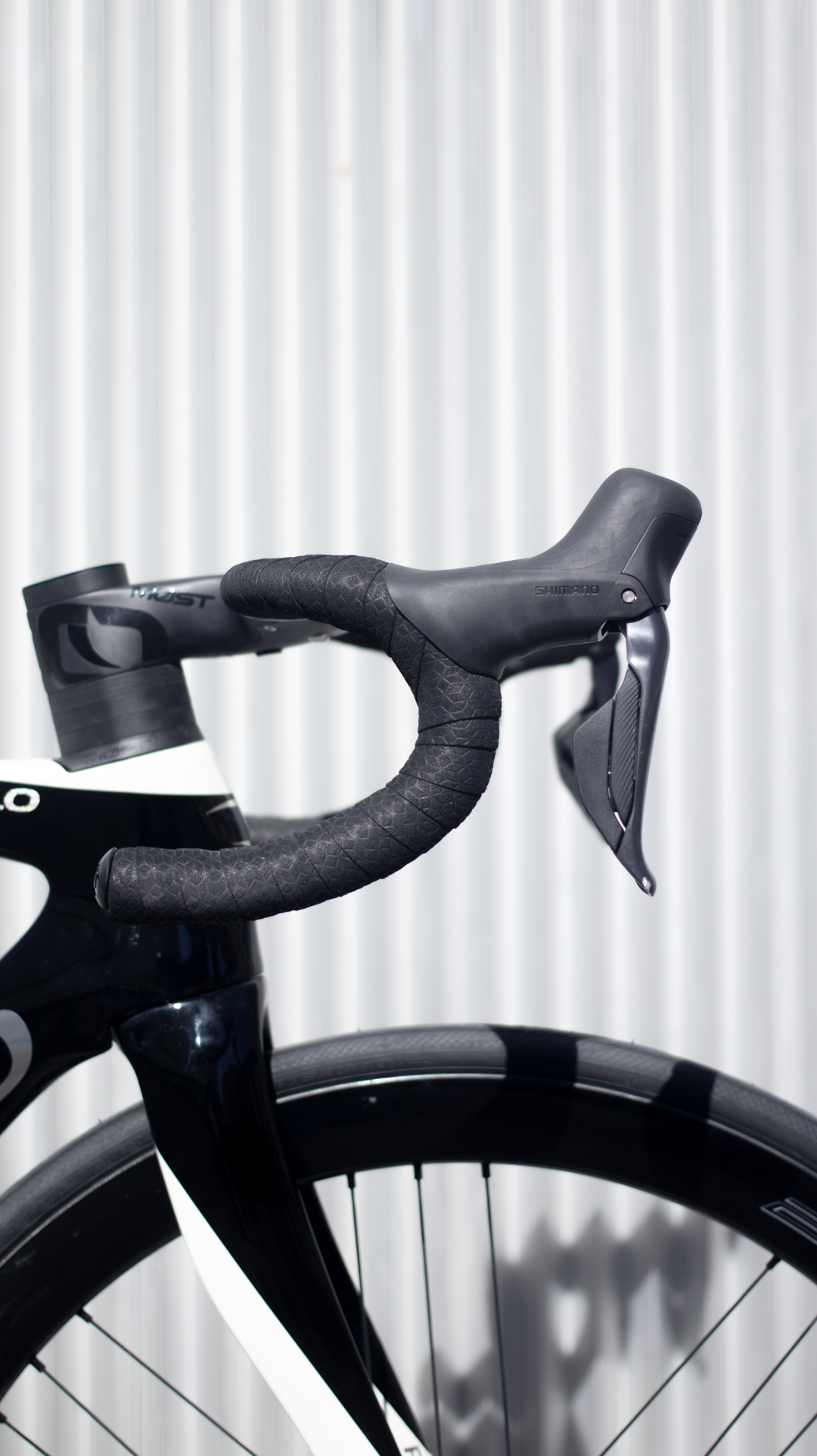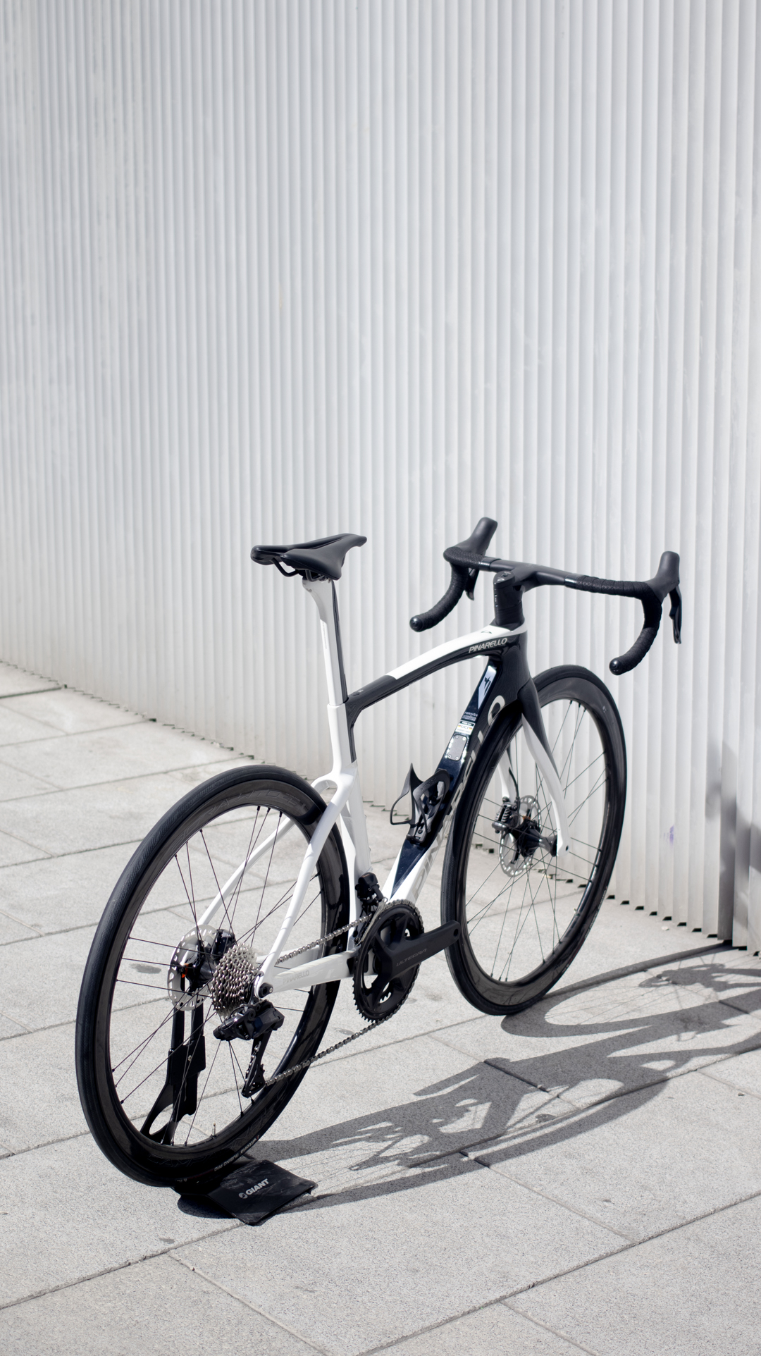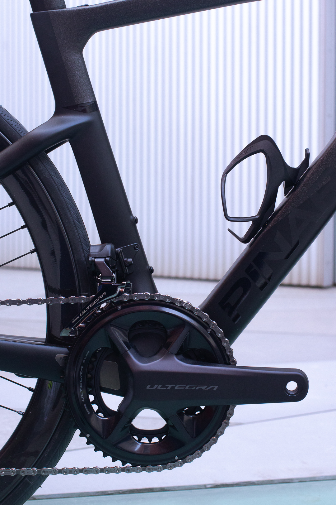 Bicicleta de la marca Italiana Pinarello con su modelo F, cuadro y horquilla de carbono, Grupo completo Shimano Ultegra DI2 12 velocidades y ruedas de carbono Campagnolo.