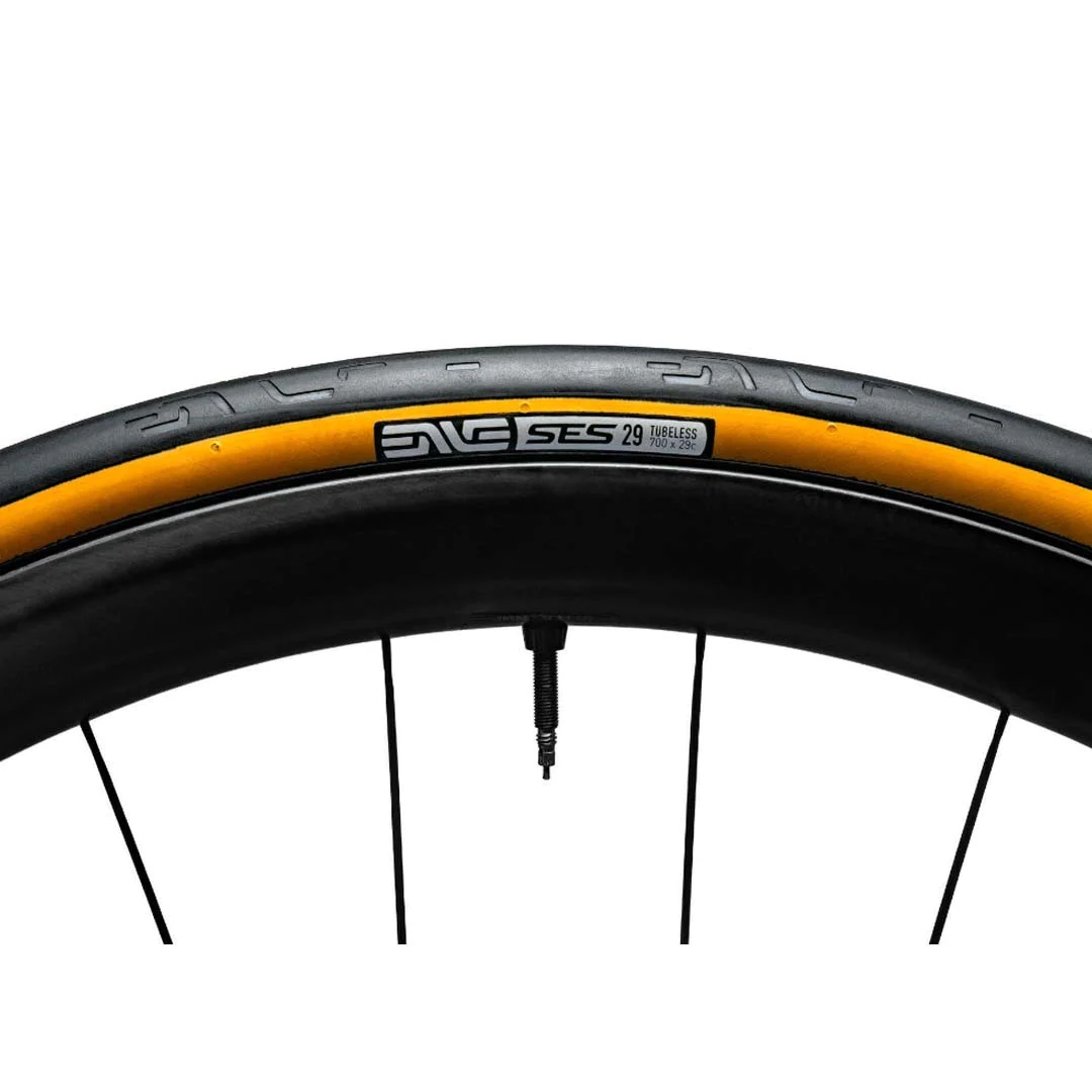 El neumático ENVE SES Road es un neumático sin cámara construido según la filosofía de ENVE «real-world fast». El neumático ofrece la mejor aerodinámica de su clase, a la vez que proporciona una mezcla equilibrada de fiabilidad duradera, baja resistencia a la rodadura, protección antipinchazos, una configuración sin cámara fácil de usar y un diseño ligero.