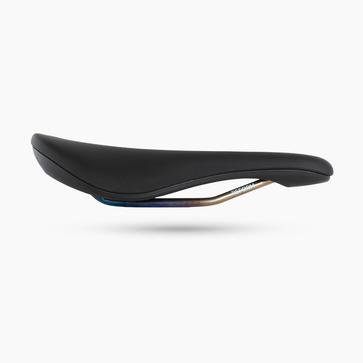 Utilizamos tecnología de mapeo de la presión para visualizar los puntos de presión en la superficie del sillín. La ilustración de arriba muestra los puntos calientes de un jinete antes de moldear el sillín y una reducción significativa después de completar el moldeado. Gracias a una mejor distribución del peso y una mayor comodidad, el sillín Reform está cambiando las reglas del juego.